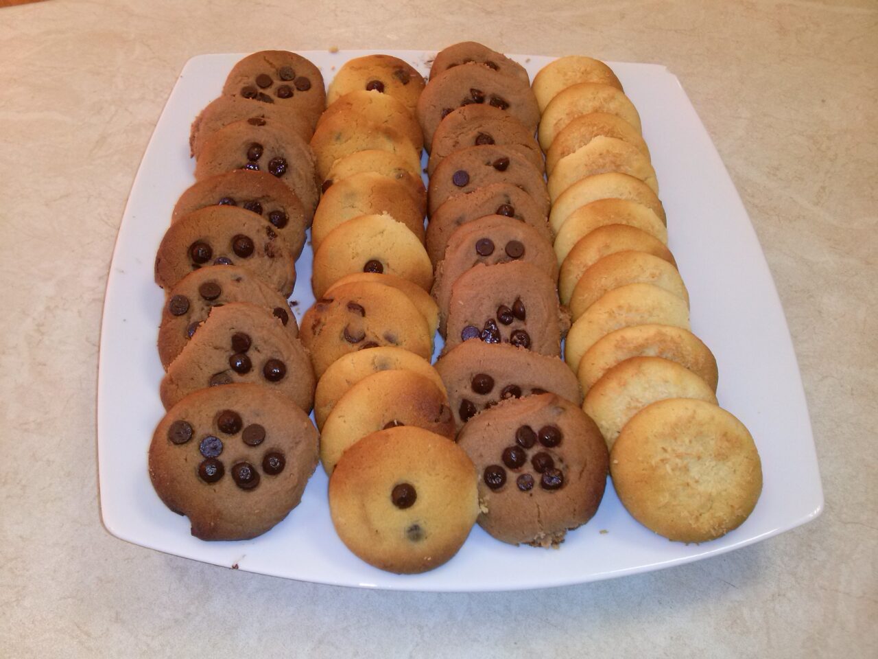 - Με δυο κουτάλια βγάζουμε τα cookies και ψήνουμε για 15-20 λεπτά μέχρι να ροδίσουν.
