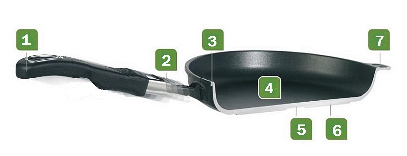 1. Eργονομικά σχεδιασμένα χερούλια και πώματα καπακιών για πιο άνετη και ασφαλή χρήση, πυρίμαχα ως τους 260°C.